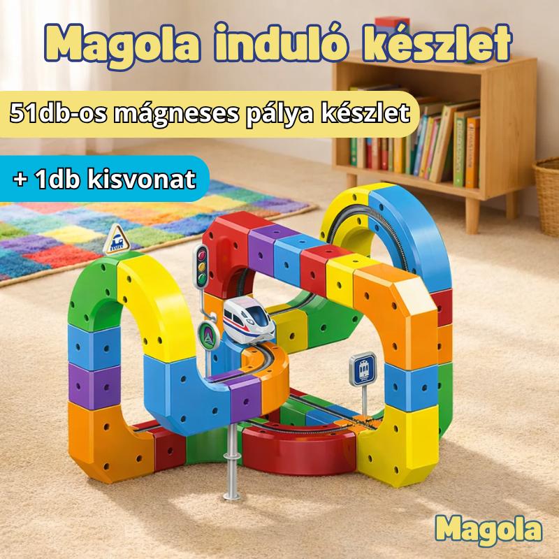 A Magola™ pályaelemei variálhatók és újrarendezhetők, így minden összeállítás más útvonalat hoz létre. A játék folyamata alkalmazkodik a gyerek figyelméhez és tempójához, természetes módon.